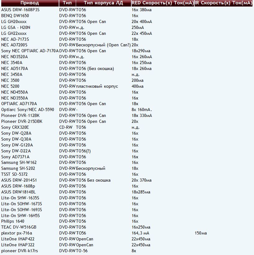 Мощность установленного диода можно определить по такой характеристике привода: надо посмотреть с какой скоростью он пишет двухслойные диски, если на десятой, то мощность диода сто восемьдесят — двести, если на шестнадцатой — двести пятьдесят — двести семьдесят.