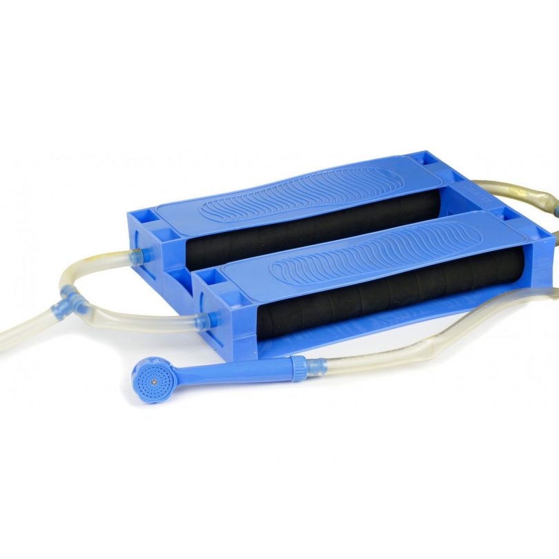 К выходу этого «насоса» подключен шланг с лейкой. Чтобы получить поток воды, по коврику топчитесь поочередно нажимая на подушки насоса. Потоптались — вода пошла.