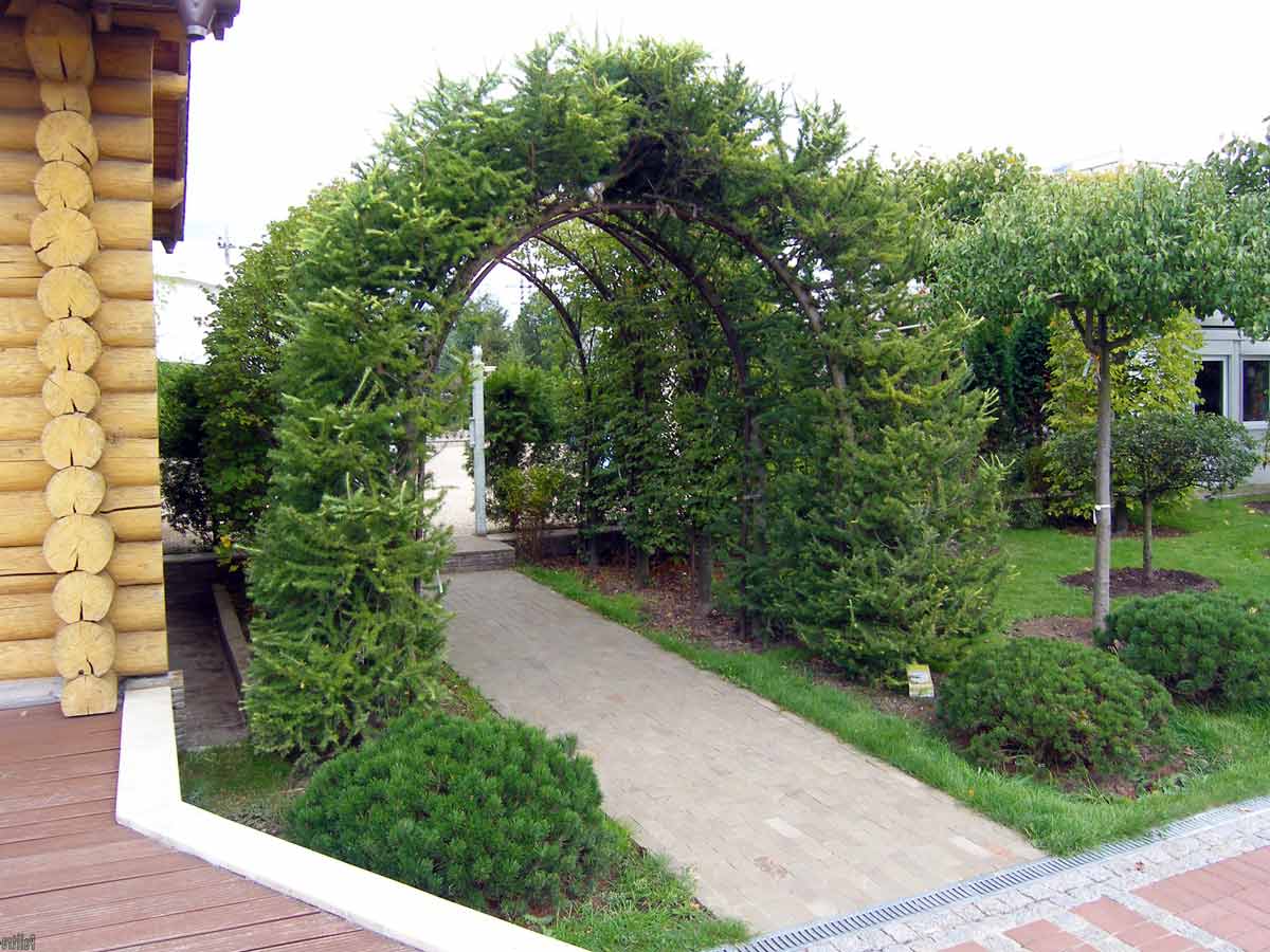 Плакучие формы можно использовать для создания живых арок, посадки у водоемов