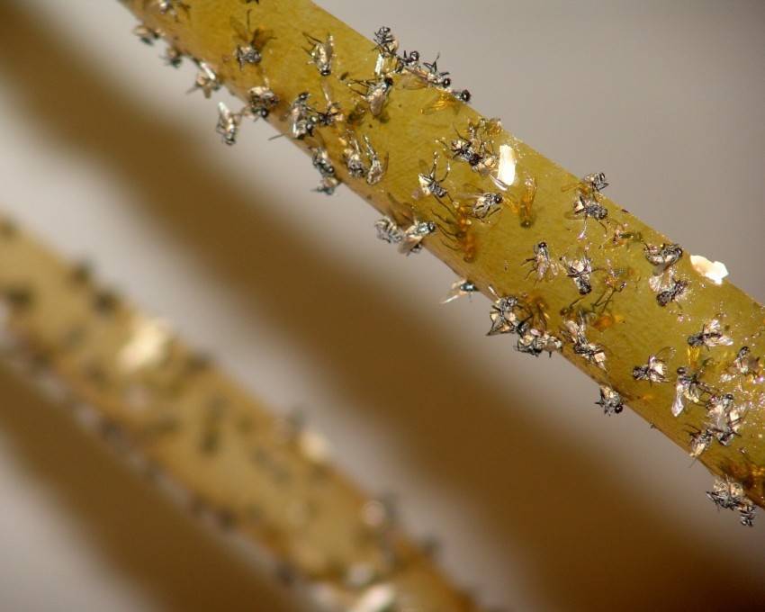 Далее ловушки развешивают прищепками по бельевым веревкам. Когда лента заполняется насекомыми, ее просто меняют на новую. Готовить и применять клейкие приманки нужно аккуратно. Эти смеси трудно отмываются даже с кожи, не говоря уже и об одежде. Второй минус таких ловушек – их недолговечность. Натуральные ингредиенты не действуют так долго, как химические аналоги.