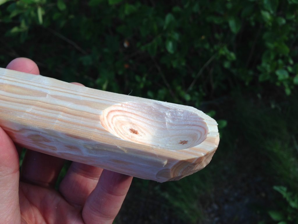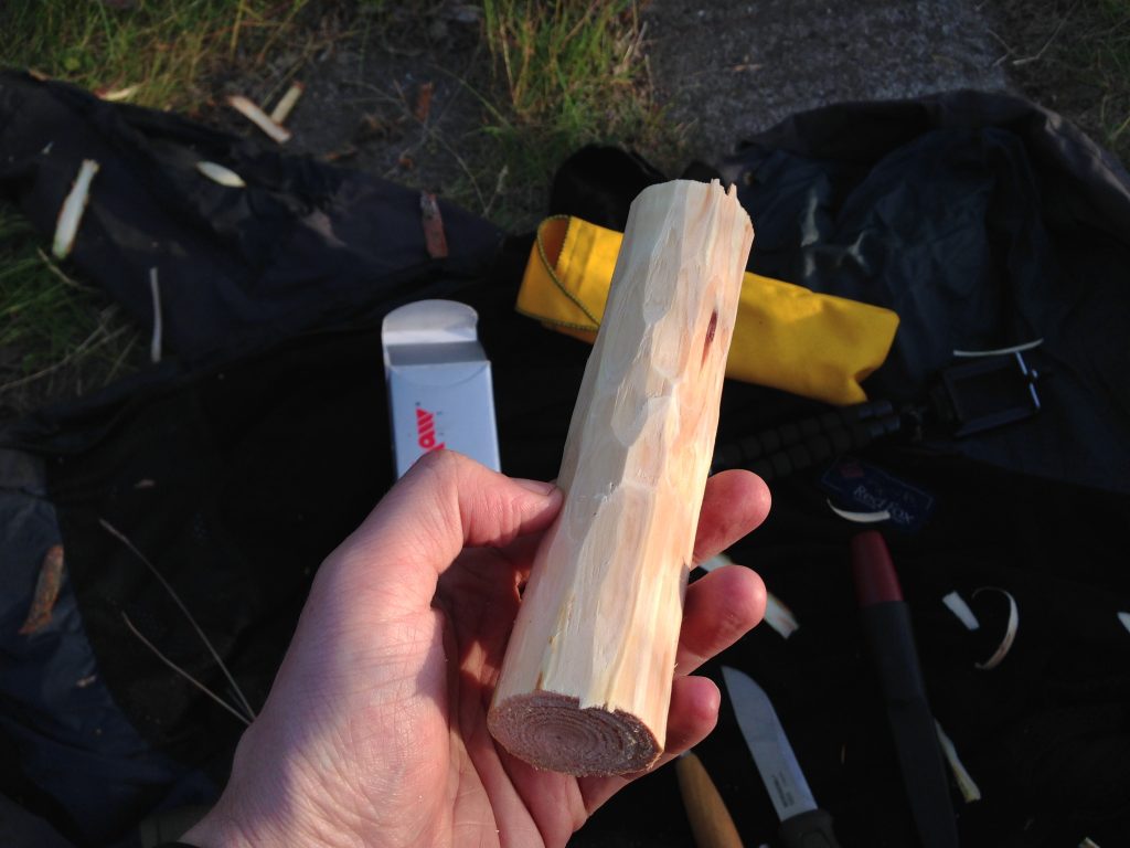 Добившись результата примерно как на фото, можно перейти приданию заготовке окончательного вида путём постепенного обстругивания ножом.