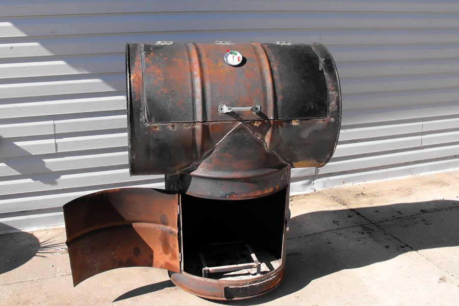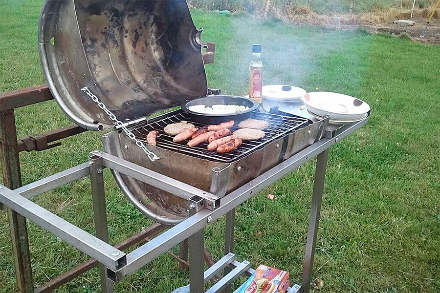 - Расширенный функционал. Если мангал из бочки сделать с крышкой, его можно будет использовать в качестве гриля или коптильни. Плюс не прогоревшее топливо удобно хранить под крышкой, которая защитит его от осадков.