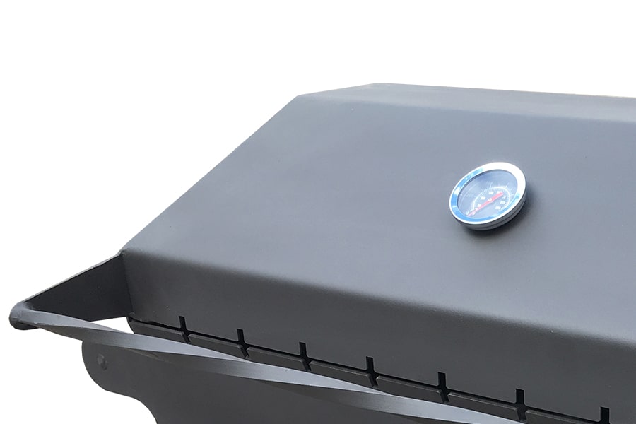 В некоторых моделях закрытых мангалов предусмотрен отвод дыма. Например, небольшая труба с возможностью перекрывать выходное отверстие.