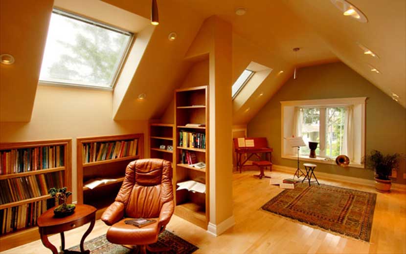 На мансарде можно обустроить кабинет с уголком для занятий музыкой Источник pinterest.co.uk