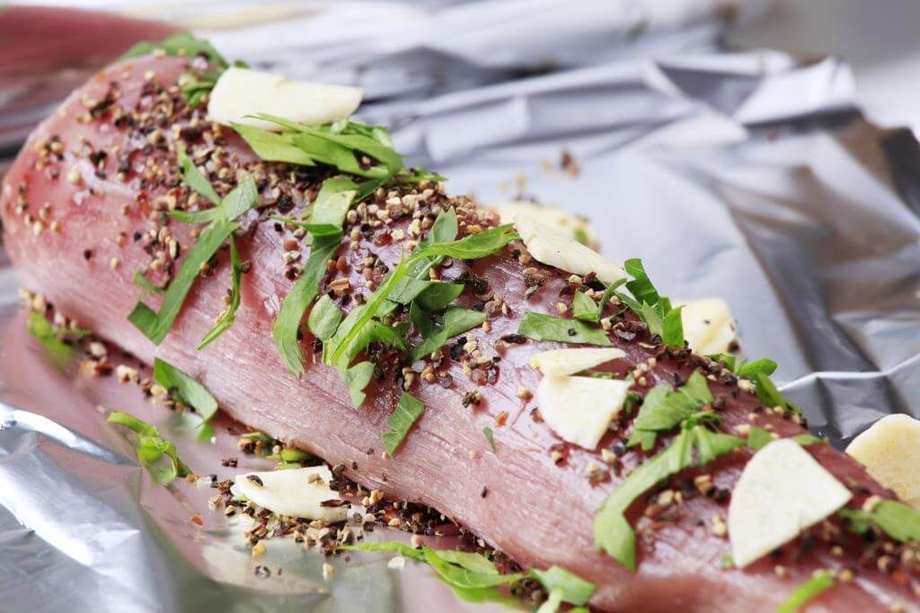 В качестве маринада для запекаемого мяса лучше всего использовать красное вино, вымочив в нем мясо минимум час. Стоит помнить о том, что для готовки в фольге мясо не стоит солить ни в каком случае. Также его необходимо качественно почистить и удалить все ненужные части.