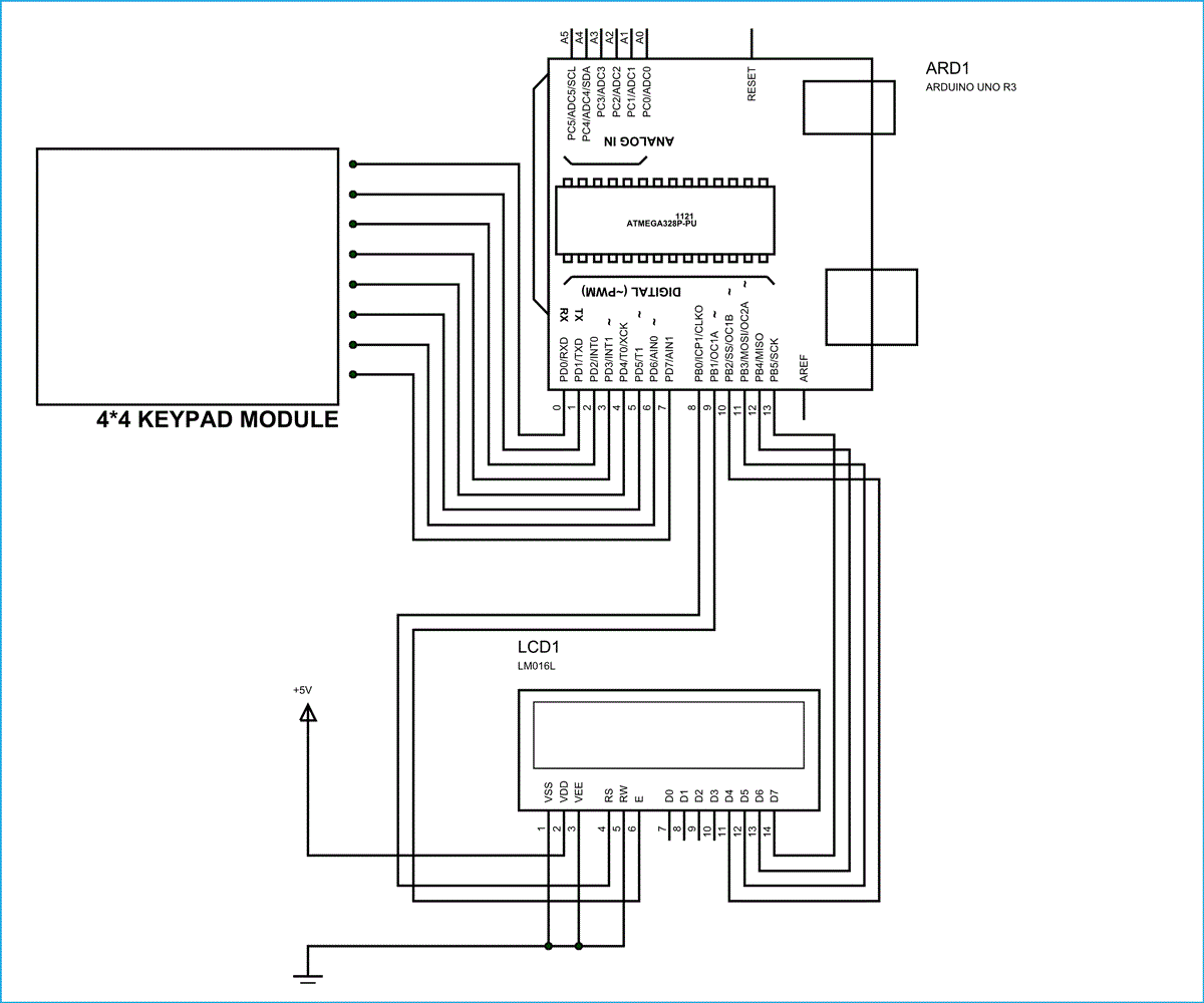 В представленной схеме подключения клавишной панели к плате Arduino Uno мы использовали только два управляющих контакта ЖК дисплея – это позволяет лучше понять логику работы схемы начинающим. Контакт для управления контрастностью и READ/WRITE сравнительно редко используются и в нашем случае их можно замкнуть на землю. Это переводит ЖК дисплей в режим чтения и обеспечивает ему максимальную контрастность. Поэтому нам нужно только управлять состоянием контактов ENABLE и RS чтобы передавать символы и данные на ЖК дисплей. Более подробно об этих процессах можно прочитать в статье о подключении ЖК дисплея к плате Arduino.