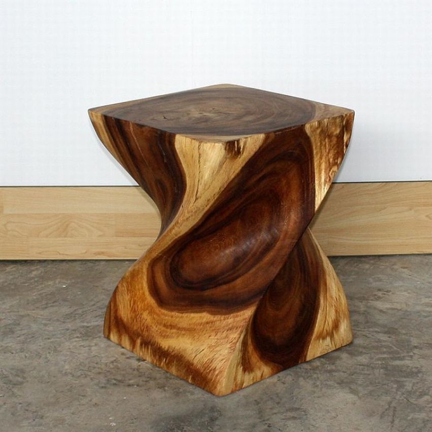 Необработанное дерево – практически готовая форма для сотворения креативной мебели. Сначала работ древесную породу лучше хорошо просушить и кропотливо обработать. Тогда изделия прослужат вам еще подольше
