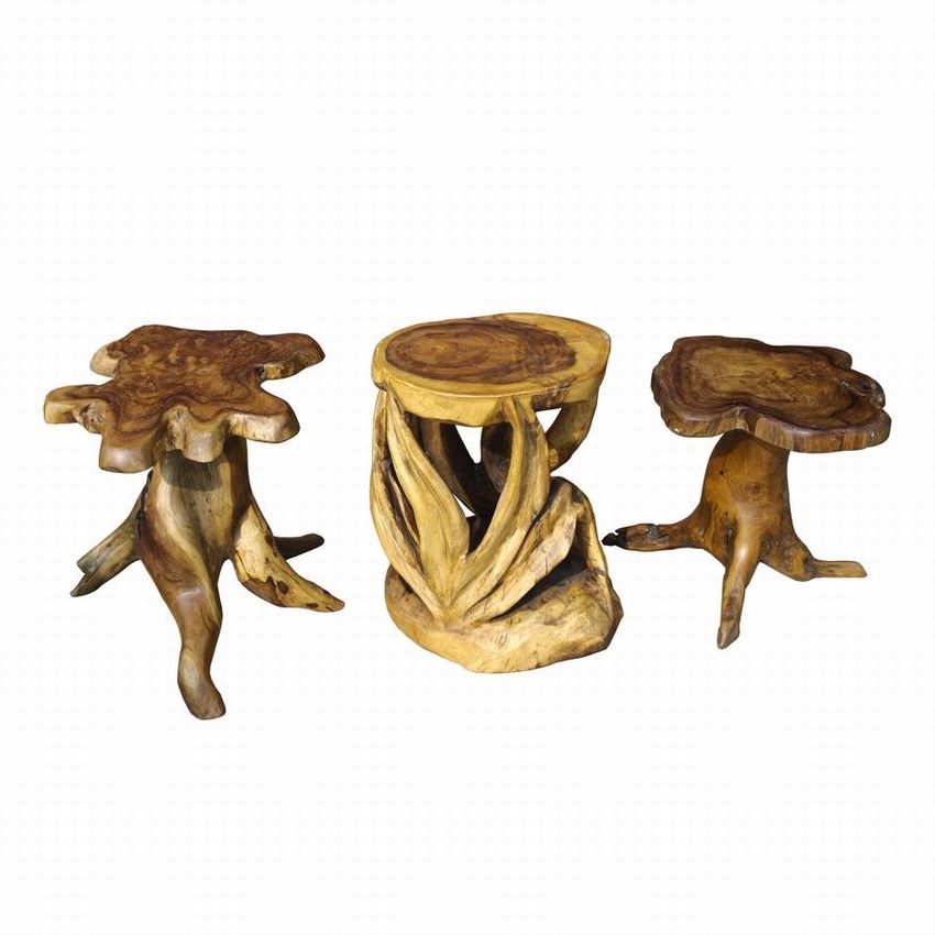 И раньше, и в наше время мебель из пней и корней под заказ делают из ценных пород дерева, порой — из экзотических для нашей местности материалов: тика, розового дерева, железного дерева, кап, слэбов. Интересны и эксклюзивны работы из самшита — это тяжелая древесина желтого цвета, очень ценная, ведь самшит растет буквально на 1 миллиметр в год. Если плотность дуба начинается от 0,7 г/м3 (при том, что дуб считается одним из самых твердых, плотных материалов!), то плотность самшита может достигать 0,13 г/м3, что почти в два раза выше.