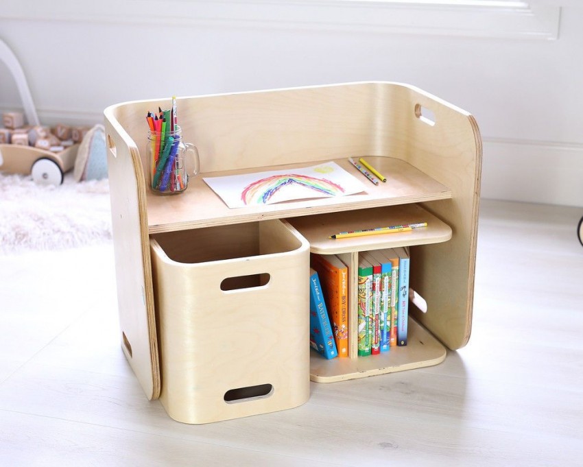 Из толстой фанеры можно сделать практически любой предмет мебели для ребенка от стола до кровати-чердака. Фанера нужна толстая, от 1,5 см и толще. Для работы с ней необходимо владеть навыками резьбы лобзиком, так как придется скруглять углы, выпиливать плавно изогнутые края и круглые элементы.
