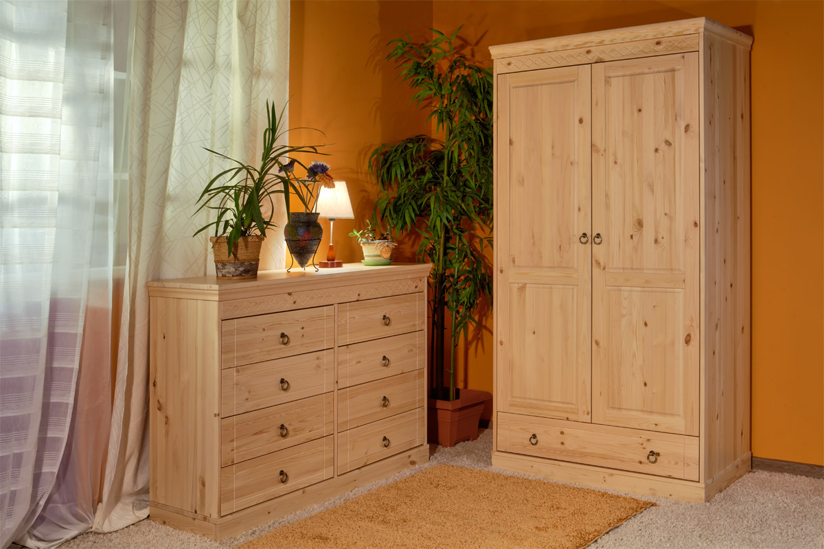 К бюджетным моделям относятся комоды из сосны, березы и липы.