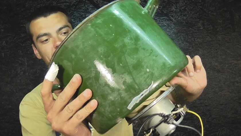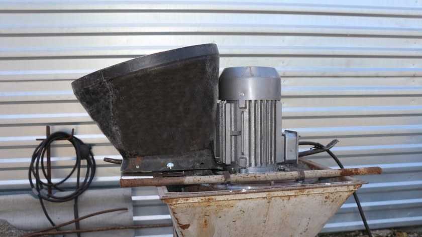 После успешного пробного запуска останется только изготовить станину, закрепить аппарат, присоединить к нему тару для приема и выхода сырья. Простейшая мельница для зерна готова.