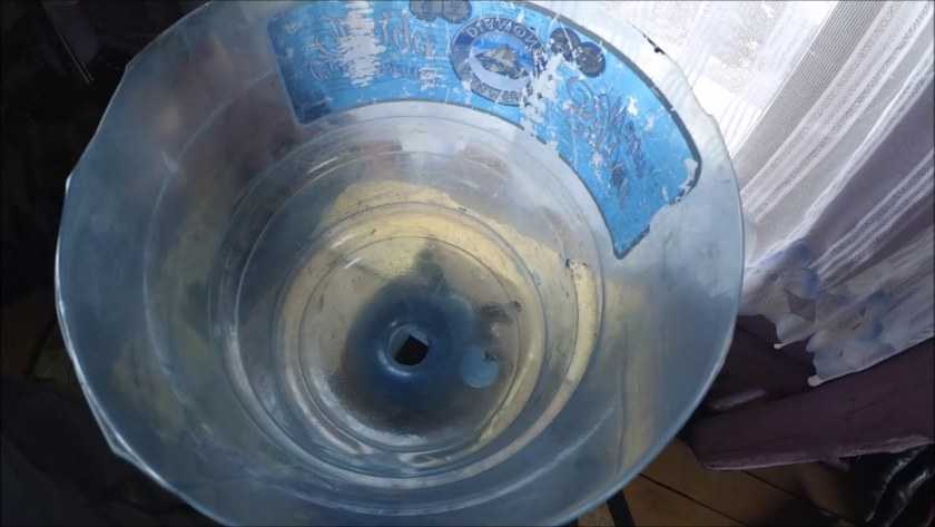 Важно не забыть организовать бункер для сбора переработанного корма. Для этого проще всего приспособить пластмассовую бутылку.