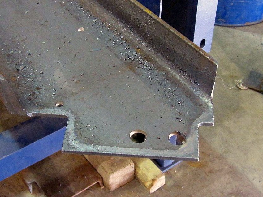 Иногда, при применении в качестве несущего элемента широкого швеллера, вместо треугольных заготовок для ступеней приваривают к основе металлические подставки для них.