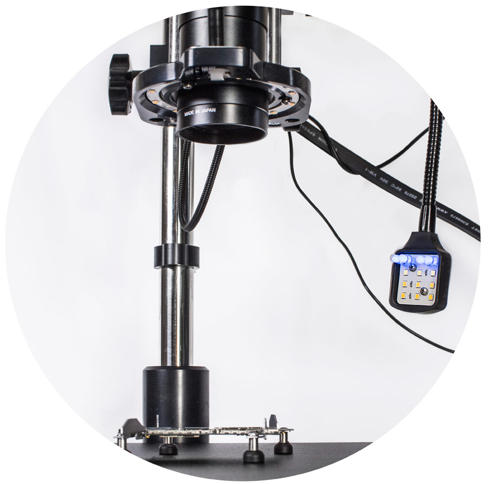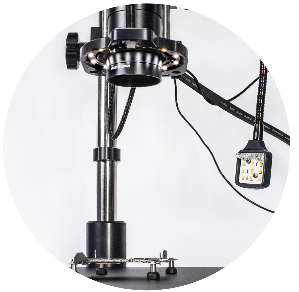 Обязательно требуется подсветка рабочей зоны, в качестве подсветки можно купить готовый модуль для микроскопов, либо изготовить самому.