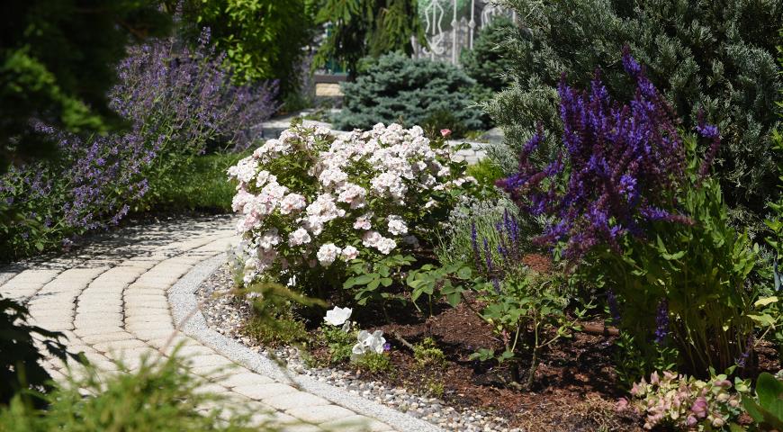 В современном саду не должно быть множества разных оттенков в цветниках: лучше определиться и отдать предпочтение чему-то одному