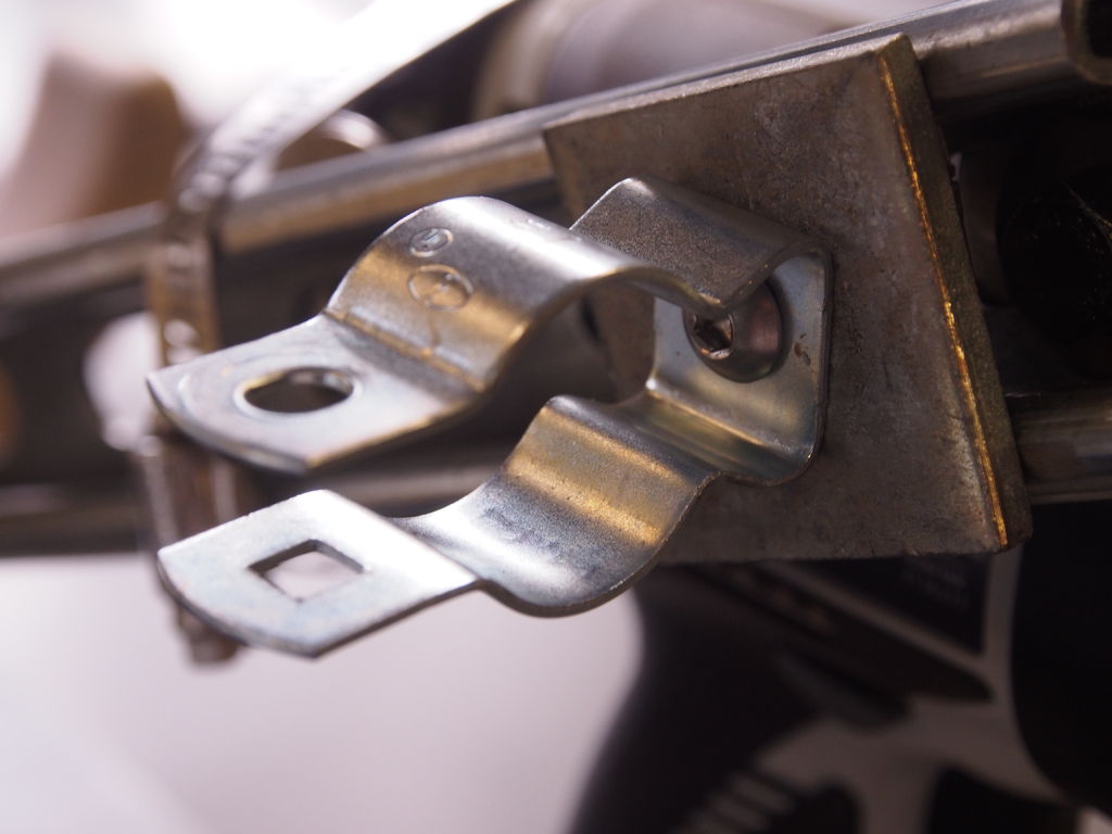 Это магия Uni-Strut. Вы можете просто монтировать на него вещи где угодно, без сверления каких-либо отверстий. Если вы допустили ошибку, вы можете просто переместить крепёж.