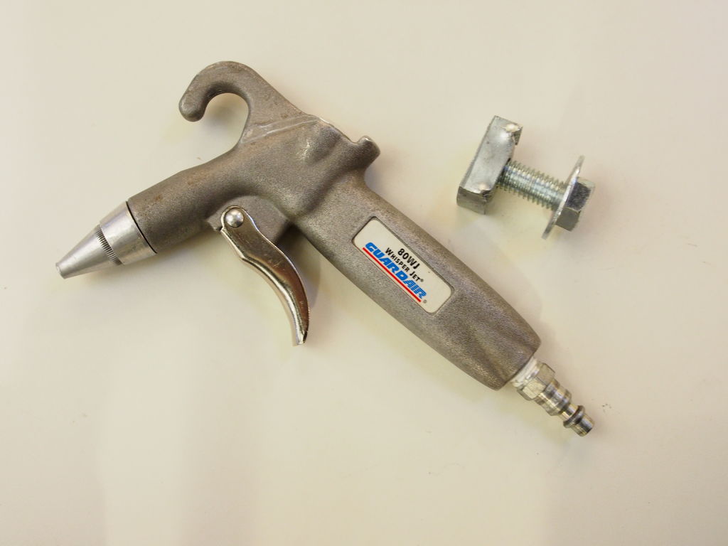 При сооружении мойки своими руками необходимо подобрать также и пистолет, оснащенный форсункой. Благодаря его форме и получается имитация формы рабочей струи. Собственно, внешним видом он напоминает пистолет, используемый на автомобильных заправках. Для того чтобы начать подачу воды из сопла, следует нажать на рукоятку. Это является несомненным плюсом, так как позволяет сэкономить большое количество воды: жидкость подается только тогда, когда она нужна, при нажатии на рукоять пистолета. Выполнить запорный клапан своими руками довольно проблематично, наиболее простым и надежным вариантом будет приобретение готового наконечника.