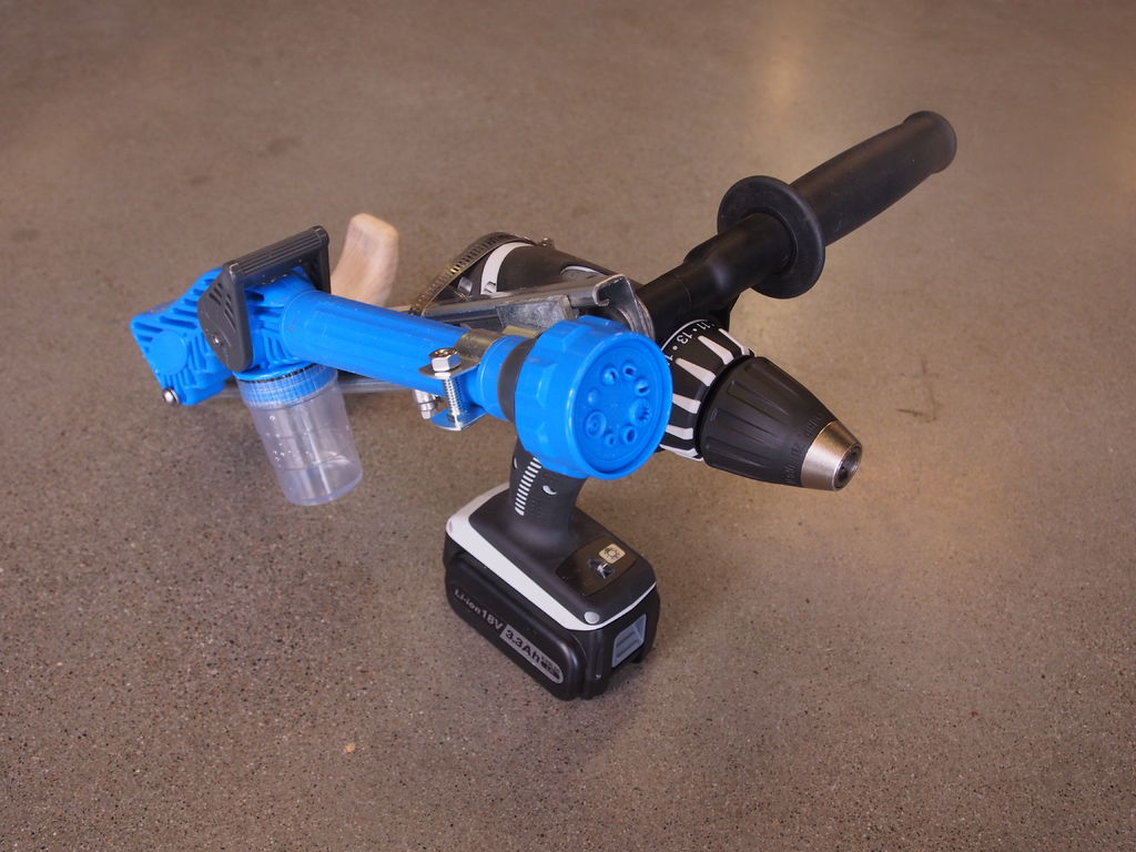 У нашей мыльной пушки не было отверстий, но в передней части было красивое круглое тело. Она была закреплена с помощью зажима, предназначенного для крепления круглого электропровода