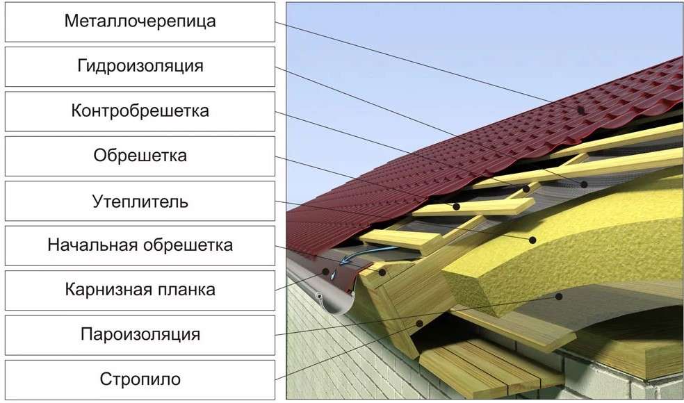 Общие принципы устройства этих слоев кровельного «пирога» для различных кровельных материалов схожи, но с единственной поправкой – в случае металлочерепицы в качестве гидроизоляции нельзя использовать материалы на основе битума.