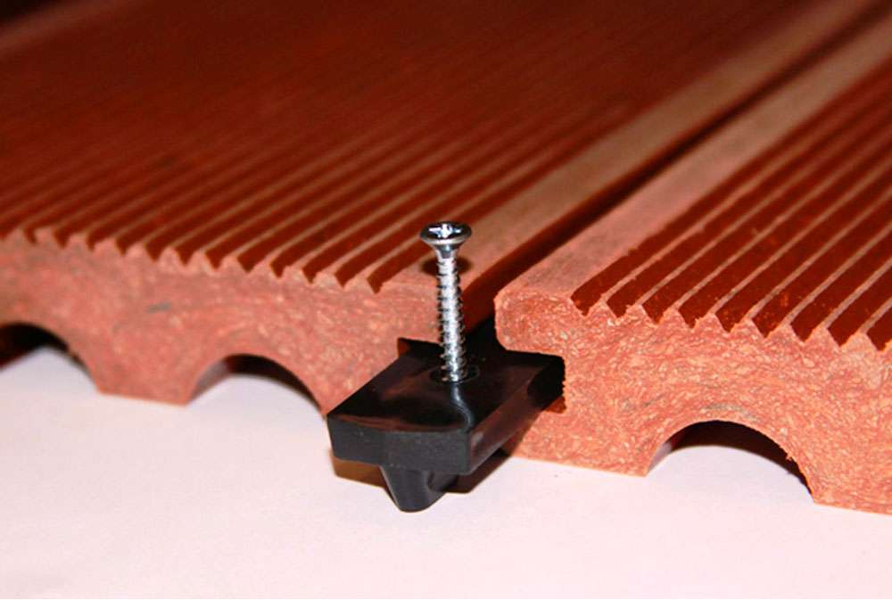 - укладка террасной доски производится предлагаемыми производителями крепежными изделиями (скобами, кляймерами) или обычными саморезами по дереву.