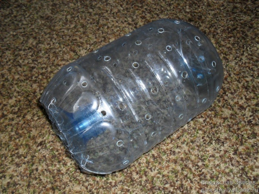 Небольшие дырочки. Ловушки для рыбы на реке должны иметь относительно небольшие дырочки. Тогда бутылка сможет быстро опуститься на необходимую глубину.