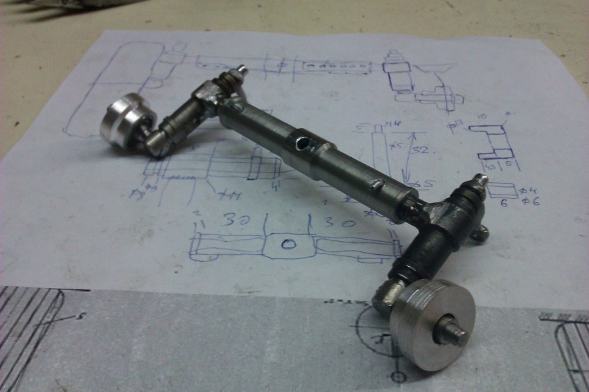 Труба крепится к раме через высверленные отверстия, далее крепятся рулевые тяги, тормоза. А в конце устанавливается рулевая колонка.