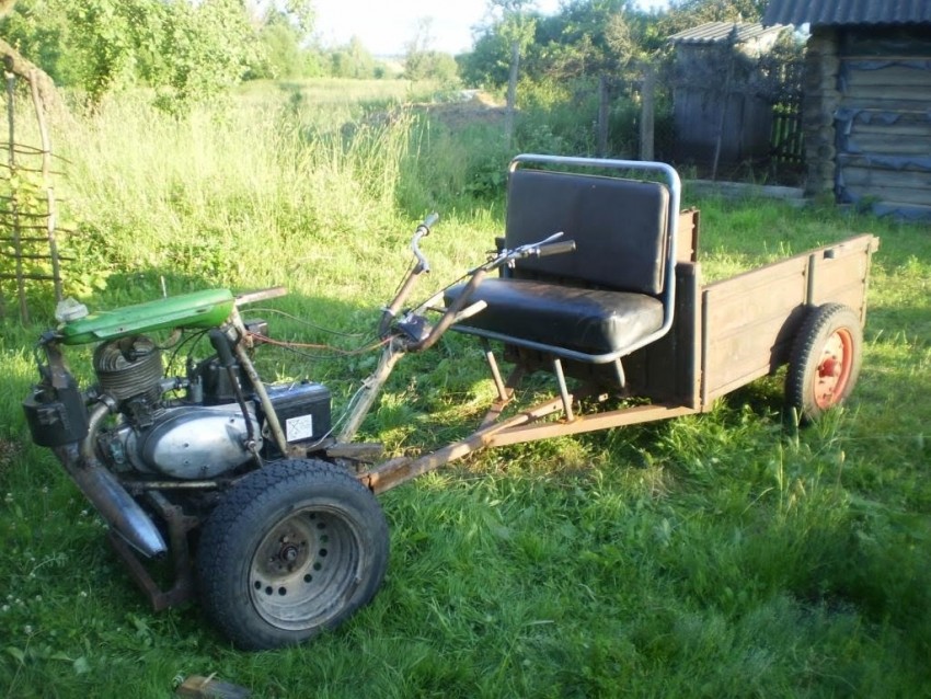 Продуктивнее ДВС от мотоциклов марки «Планета» – одно- и двухцилиндровые (16-22 л.с). Подойдут и советские мотороллеры группы «Вятка» (прототип итальянской «Веспы»), а также «Тула» и ее прототипы, в том числе, грузовой «Муравей». Их мощность – от 5,5 до 8-11 л.с. Такие мотоциклы и мотороллеры еще стоят в гаражах и сараях, их можно за бесценок купить по объявлениям.