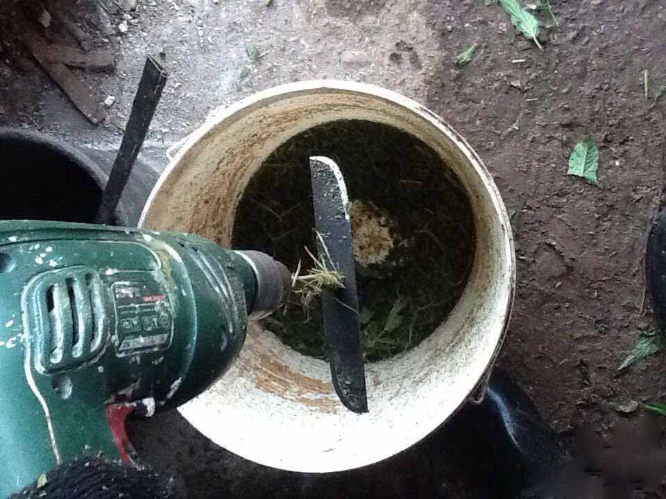 - Подготовить емкость, в которой будет находиться трава или ветки, подлежащие измельчению. Это может быть выварка или большое ведро.