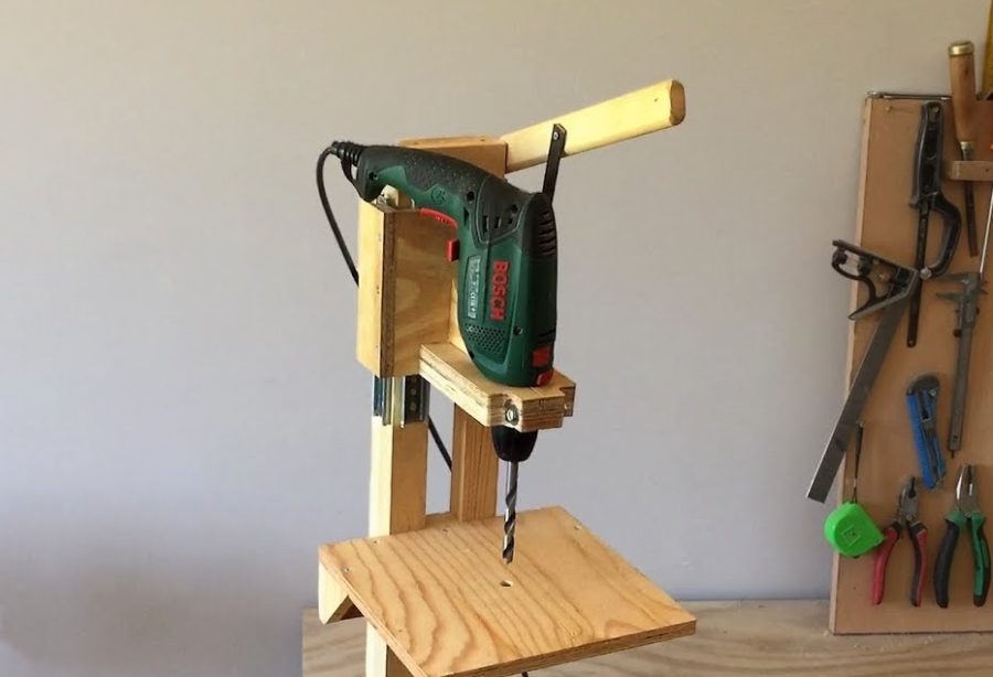 Не менее важным в домашней мастерской является сверлильный станок. Для его самостоятельного выполнения также отлично подойдет старый шуруповерт.