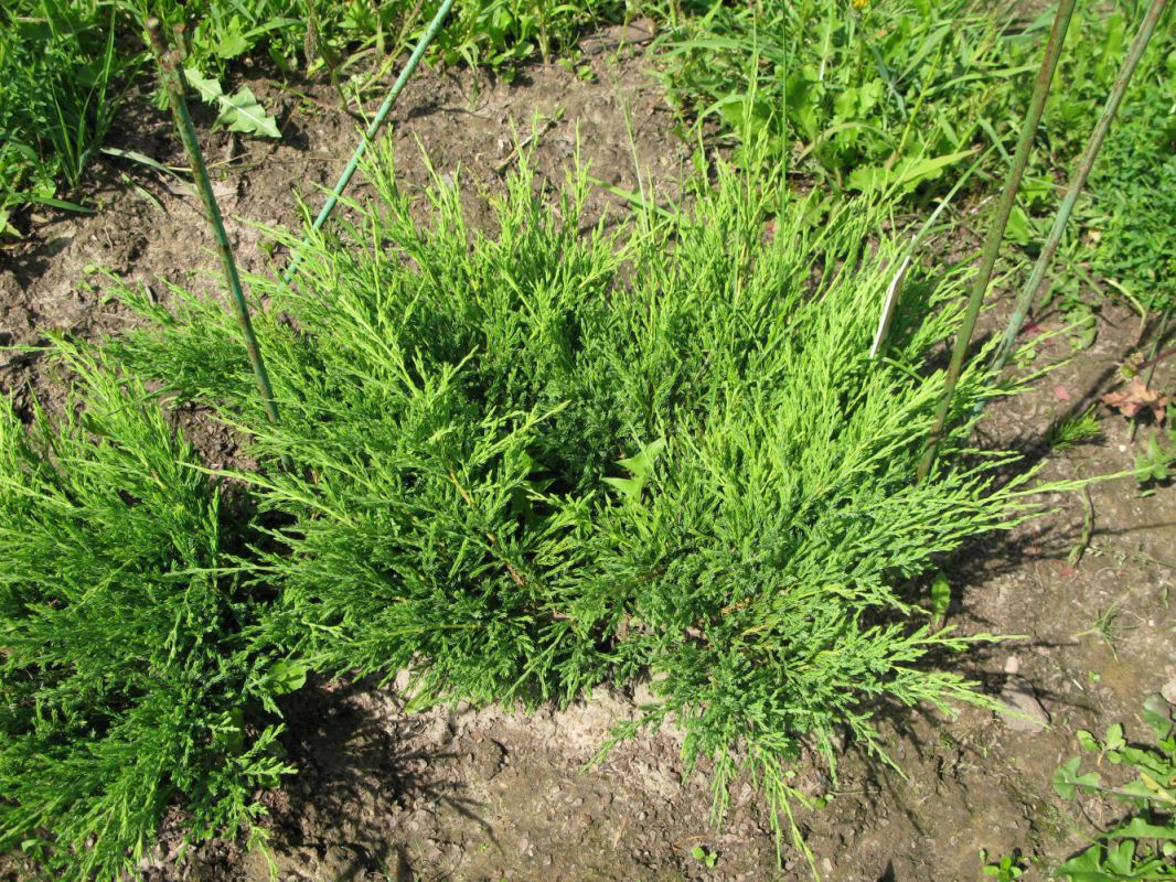 - Можжевельник средний — это что-то среднее между можжевельником казацким и китайским. Это небольшой кустарник концы его веток слегка обвисают. Они покрыты чешуевидной хвоей, хотя в гуще кроны она имеет вид иголок. Самый высокий экземпляр вырастает до 3-х метров.