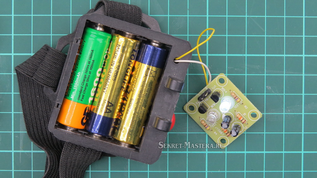 Спаяли. Заработало. А от чего питать? Мультивибратор начинает работать уже от 1,5 вольт (конечно с желтыми или красными светодиодами). То есть ограничение по нижнему пределу напряжения упирается в вольтаж LED элементов. И поставив белые светики потребуется питать уже от литиевого АКБ, так как 3 В (2 АА батареи) будет маловато. С ростом напряжения частота мигания замедляется — учитывайте этот момент.