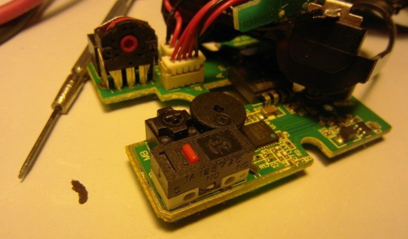 Обратить внимание на небольшой чёрный блок на месте, где стоит левая кнопка мыши. Этот микрик и отвечает за нажатие клавиш