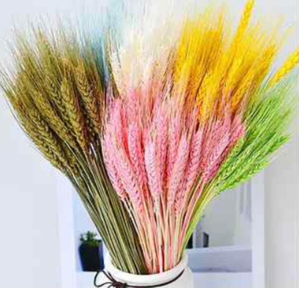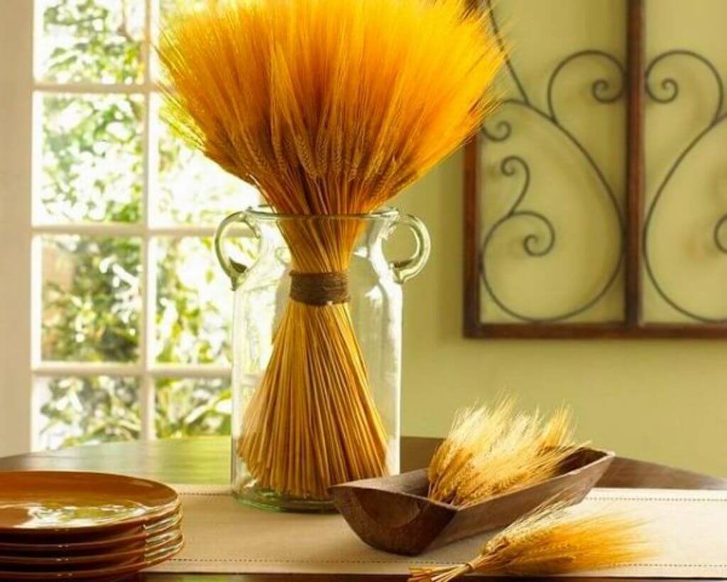 Колоски создают ощущение воздушности и пышности композиции. Собирать их следует до осыпания зерна. Выбор злаковых разнообразен: это может быть рожь, ячмень, овес, гречка.
