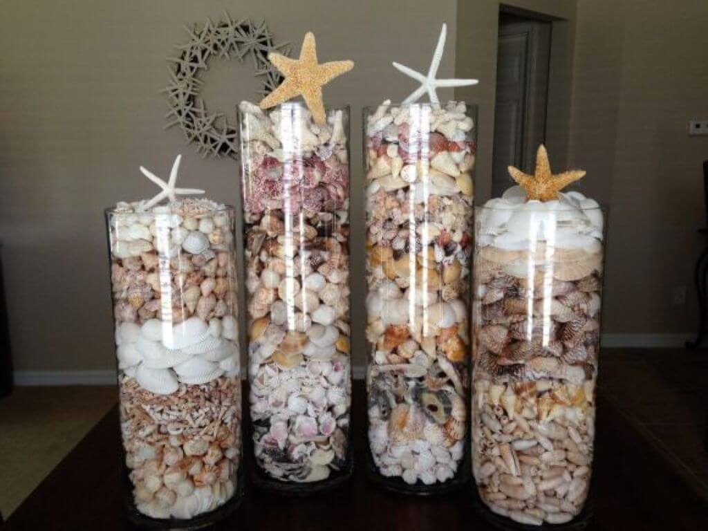 Еще одно приятное напоминание об отпуске — ракушки и камешки с пляжа. Морские элементы в стеклянной вазе внесут позитивную энергетику в интерьер. Кораллы, ракушки, морские звезды — все, что вам приглянулось во время отпуска, станет прекрасным дополнением интерьера.