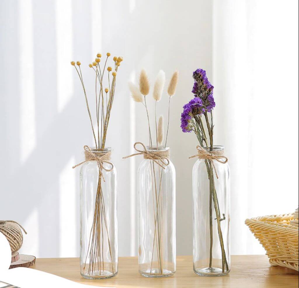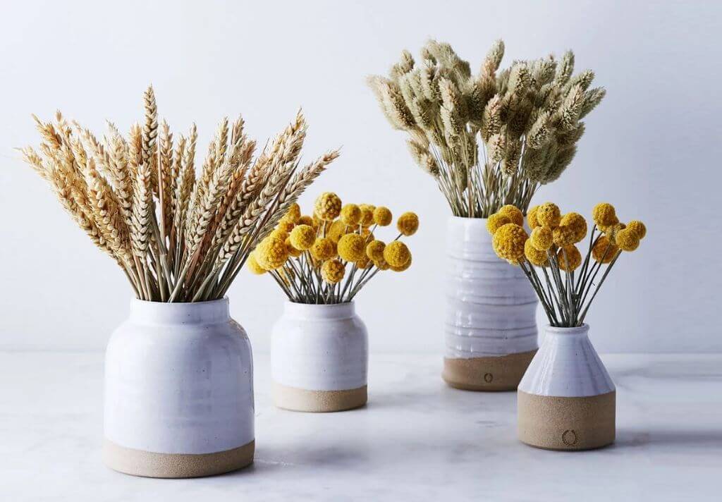 - вытянутая и узкая — для одного сухоцвета, объемная — для букета;