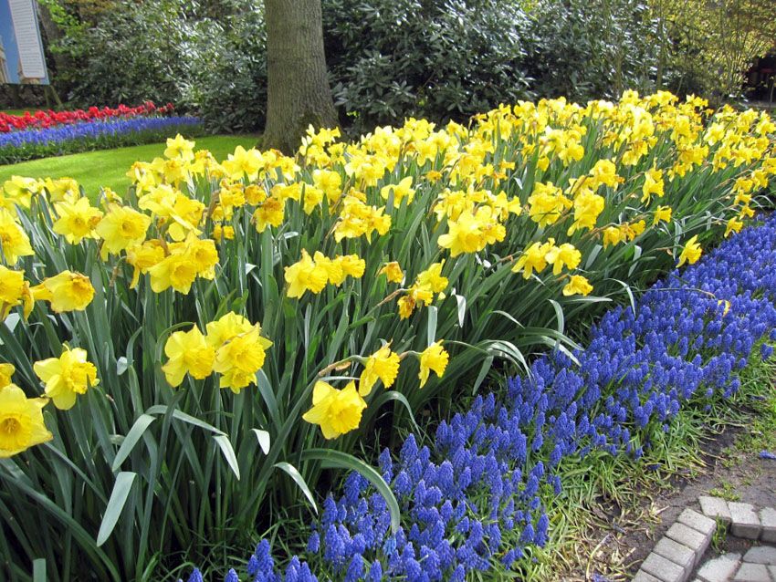 Мелкие сорта нарциссов высаживаются группами или дорожками. Крупноцветковые нарциссы можно посадить как группами, так и по одному.