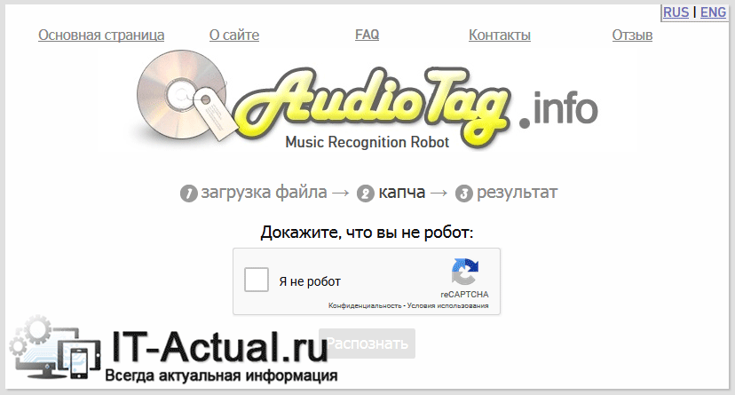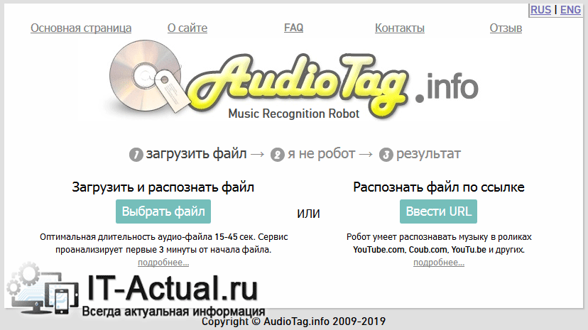 В сравнении с сервисом Midomi, рассмотренным выше, работа платформы AudioTag осуществляется по несколько иному алгоритму. Для того чтобы воспользоваться помощью данного онлайн-сервиса, пользователю необходимо будет сделать следующее: