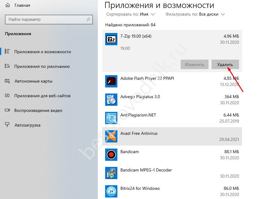 - Найдите в списке ненужную утилиту.