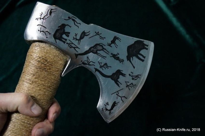 Этот топор сделал один мастер в России своими руками совсем недавно.
