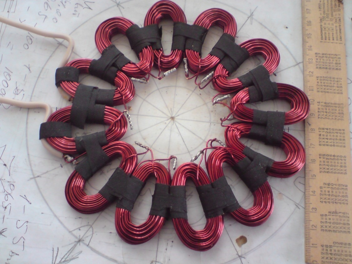 - Трехфазный магнитный генератор делают по пропорциям 3 к 3 или 4 к 3 (количество магнитов/индукционных катушек, соответственно).