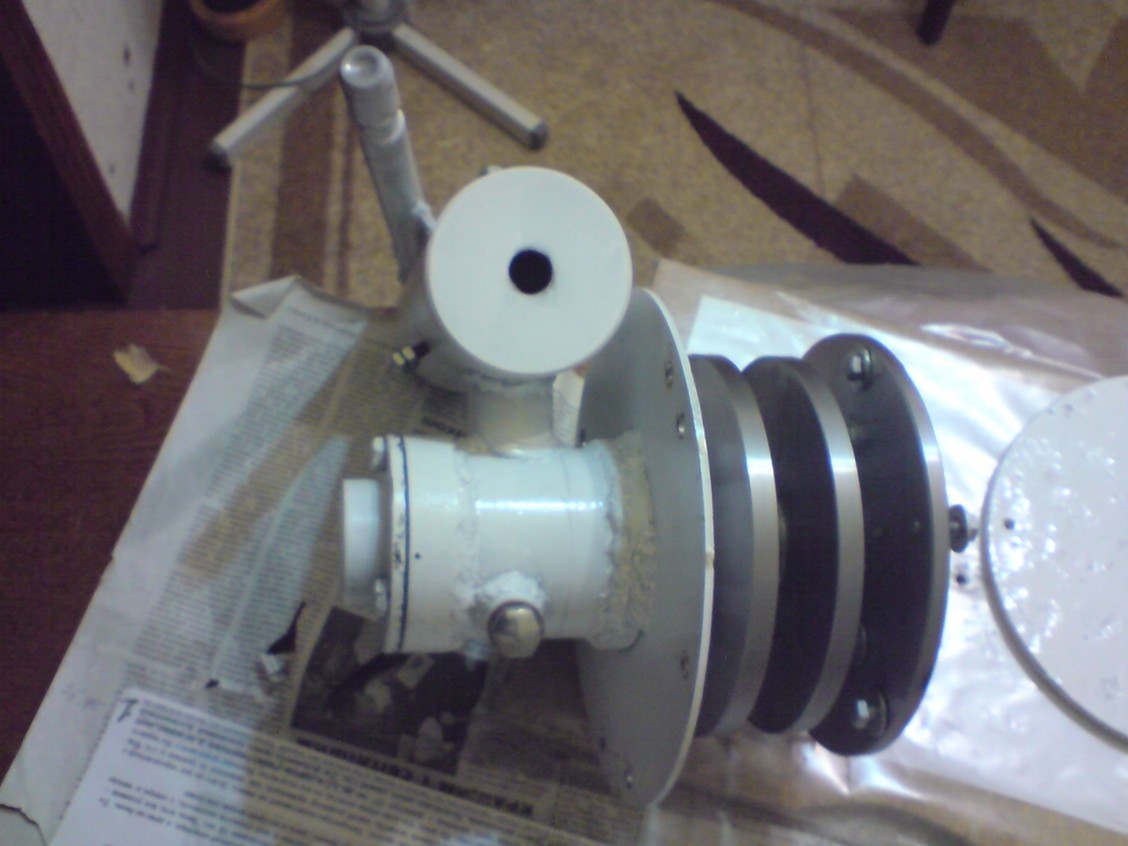 - На вал одеваются изготовленные запасные части. В результате получается следующая конструкция, плюс поворотный механизм: