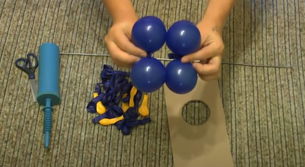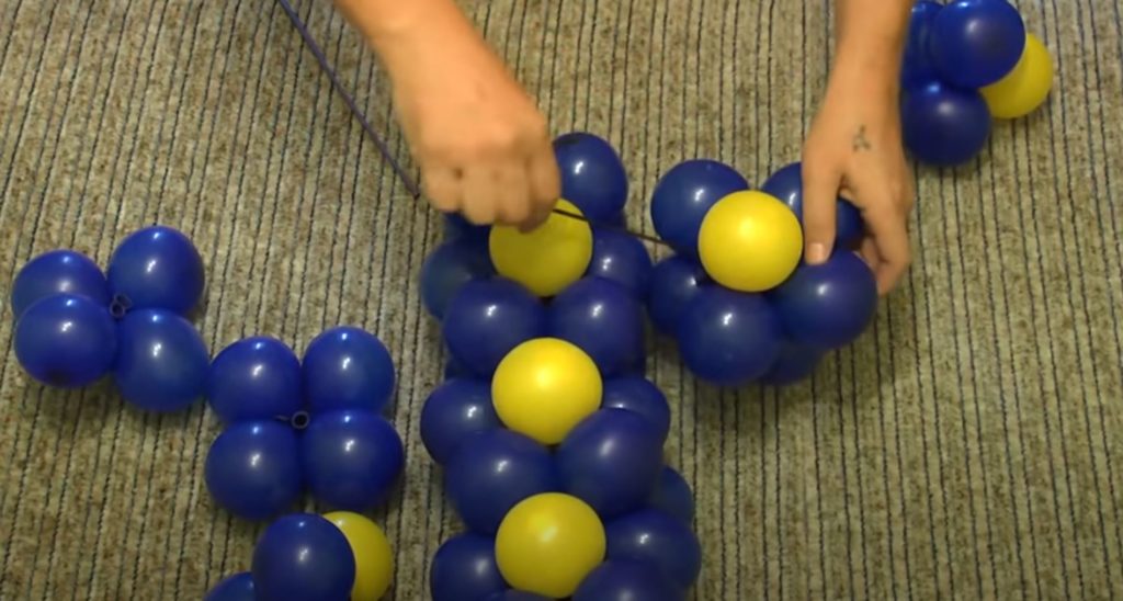 Надуваем второй и связываем их с первым, получится два шарика в связке.