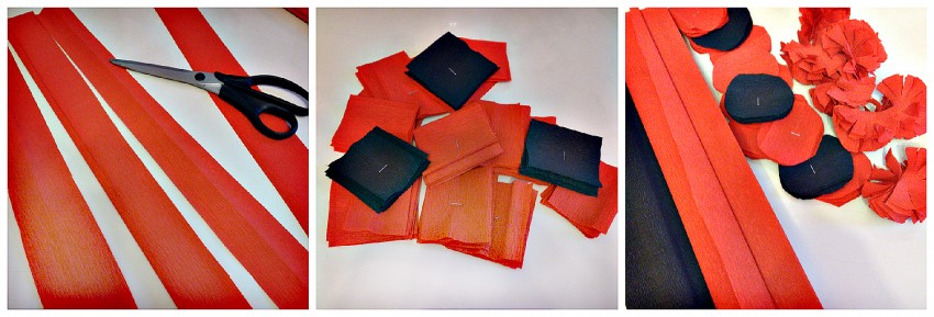 | Следующий этап – складывание гармошкой, как на фото. Делать это нужно довольно аккуратно, но стремиться к идеальной точности не стоит. Лёгкая небрежность обеспечивает более натуральный вид, к тому же цветов нужно сделать ещё очень много. |