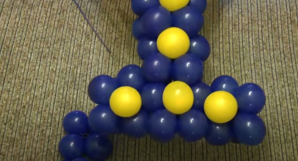 Берем шарик для моделирования и скрепляем несколько уровней по аналогии с вертикальной деталью.
