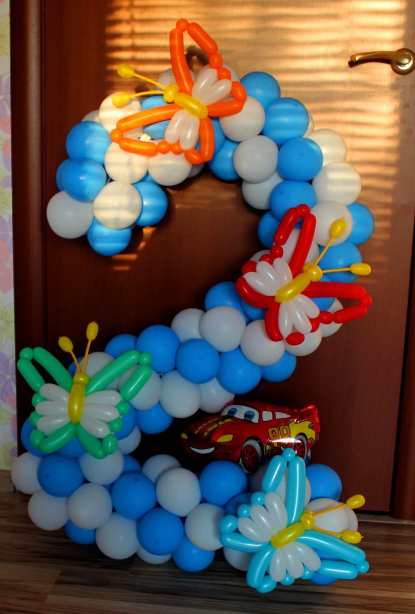 Вам может потребоваться другое количество шариков. Не ориентируйтесь на фотографию. Количество шариков зависит от размеров цифры и того, как сильно вы их надуете. Обязательно следите за тем, что бы шарики были примерно одинакового размера и, в тоже время, не очень сильно надуты. Если вы сильно надуваете шарики, то вероятность того, что они лопнут резко возрастает.