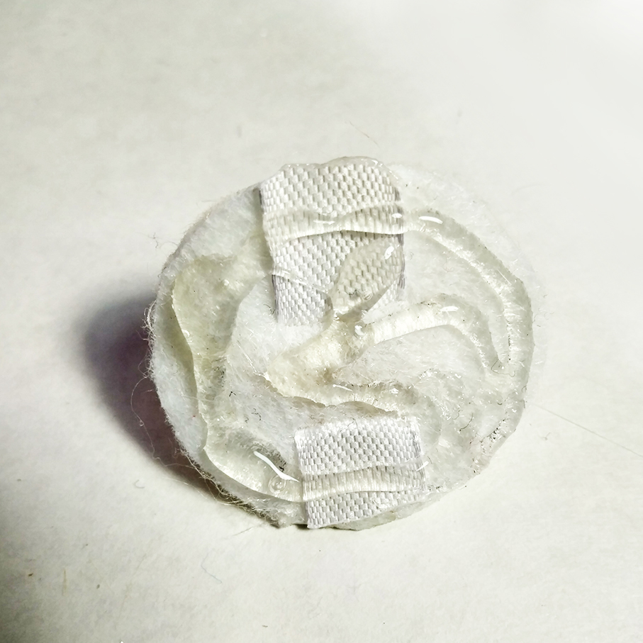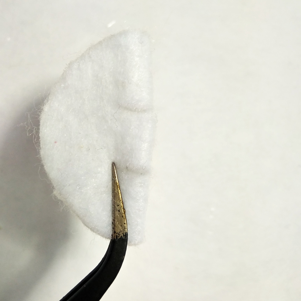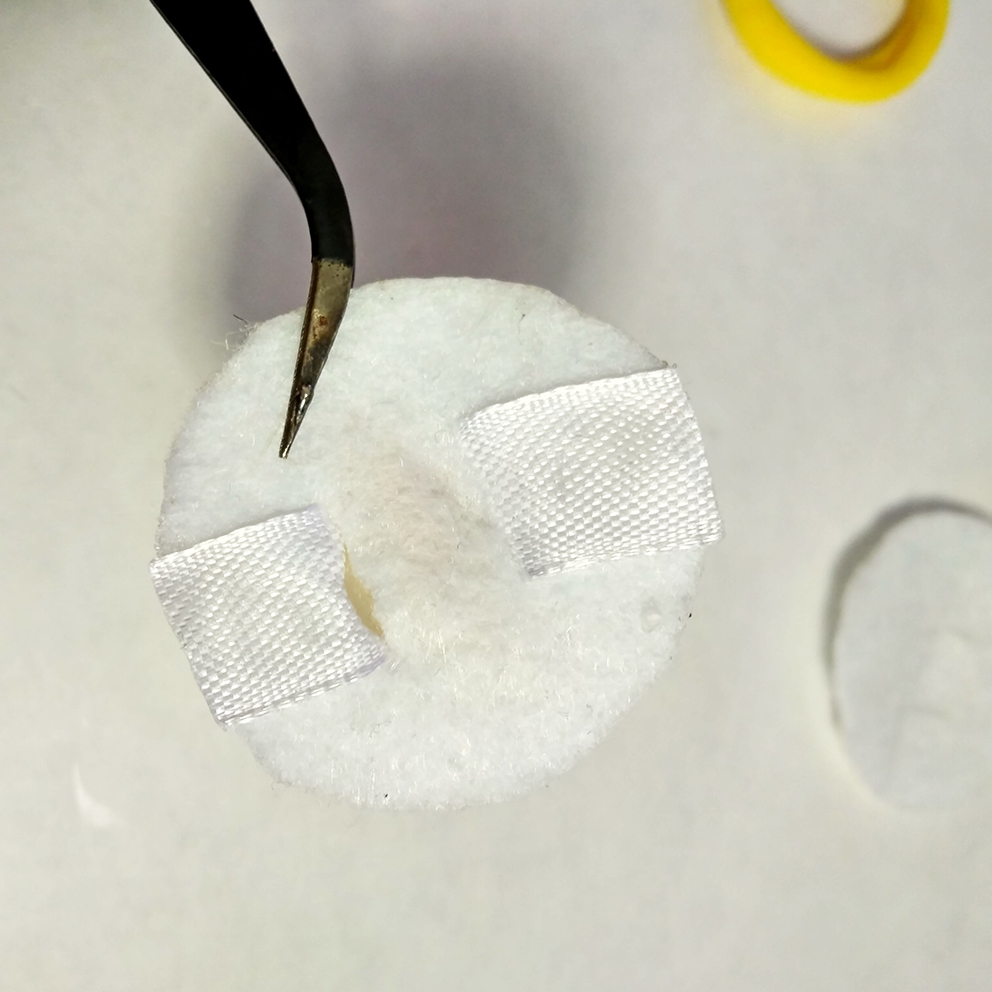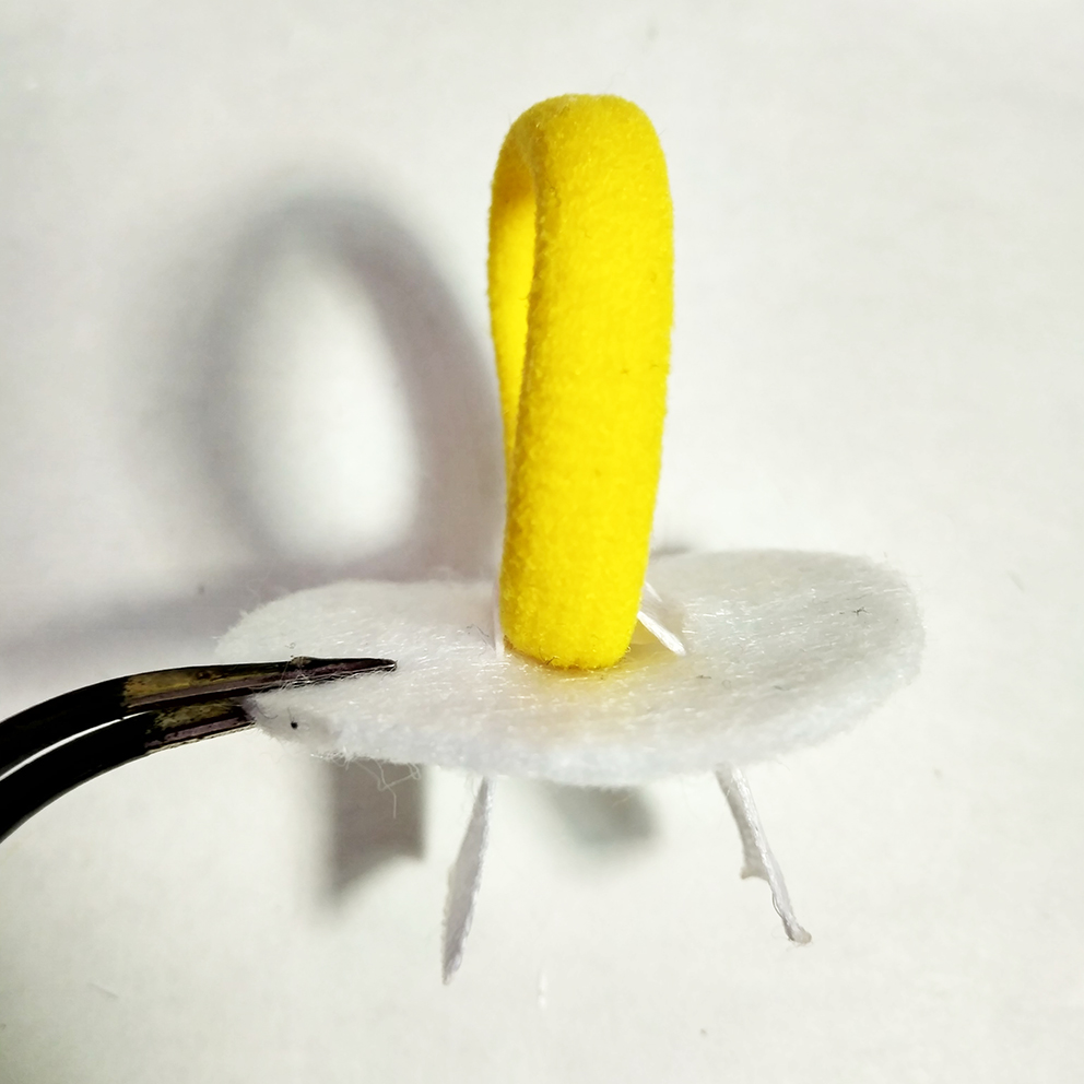 - зажим раскрыть и продеть сквозь разрезы, сделанные в центре фетрового кружка;