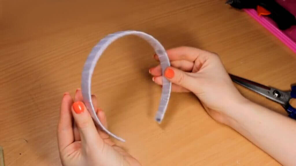 Теперь ленту нужно прикрепить на наш обруч, и выйдет очень красивое и нарядное украшение для девочки или девушки. Атлас может быть разноцветным, однотонным или цветным, но прозрачным, это уже на ваш вкус и пожелания.