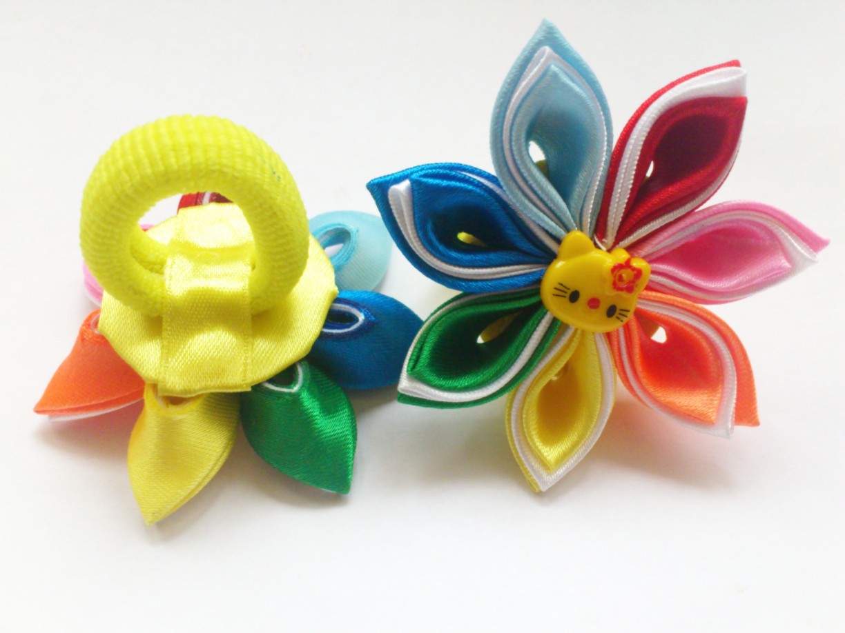 Прекрасные цветы, выполненные из лент в технике канзаши, могут стать основой эксклюзивных аксессуаров. Чаще всего это заколочки для волос (резинки, шпильки, ободки, повязки, зажимы, гребни и прочее). Кроме того, взяв за основу детали из ткани и ленточек, можно создавать всевозможные сувениры и декоративные элементы для поясов, бижутерии, сумочек, шкатулок, косметичек, кошельков, шляп, обуви и так далее.