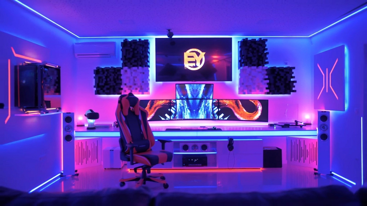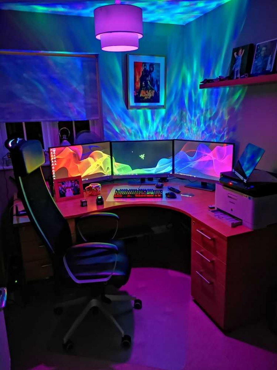 Современные технологии практически никак не ограничивают дизайнера в выборе цвета. Обычно геймеры используют в оформлении много цветных и неоновых огней. Так что здесь открывается неограниченный простор для фантазии при разработке проекта.