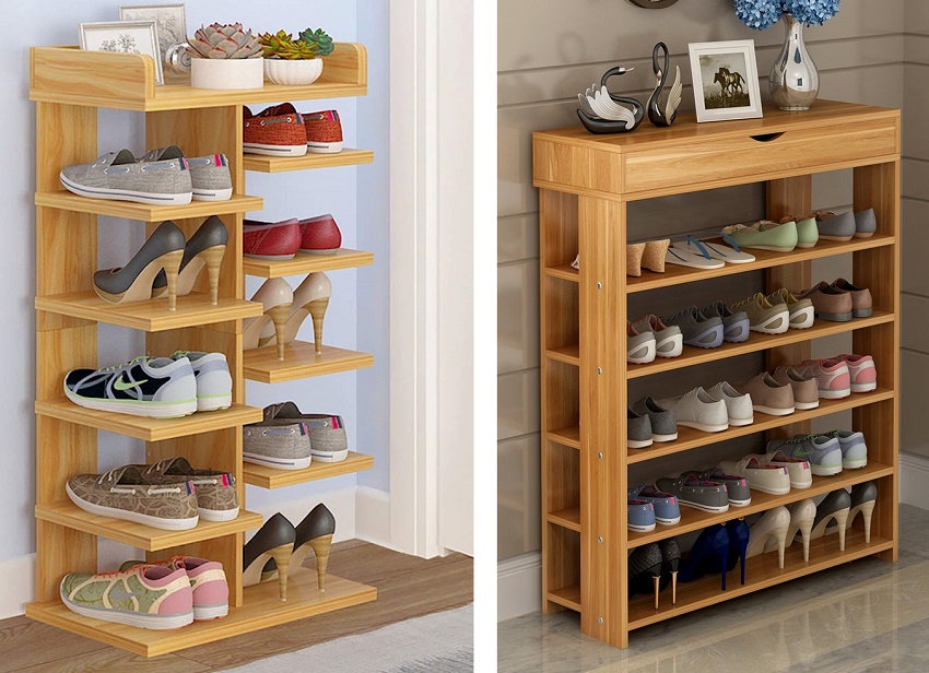 Полки, которые можно использовать под обувь, очень многообразны по своей форме и размерам, а также по функциональности